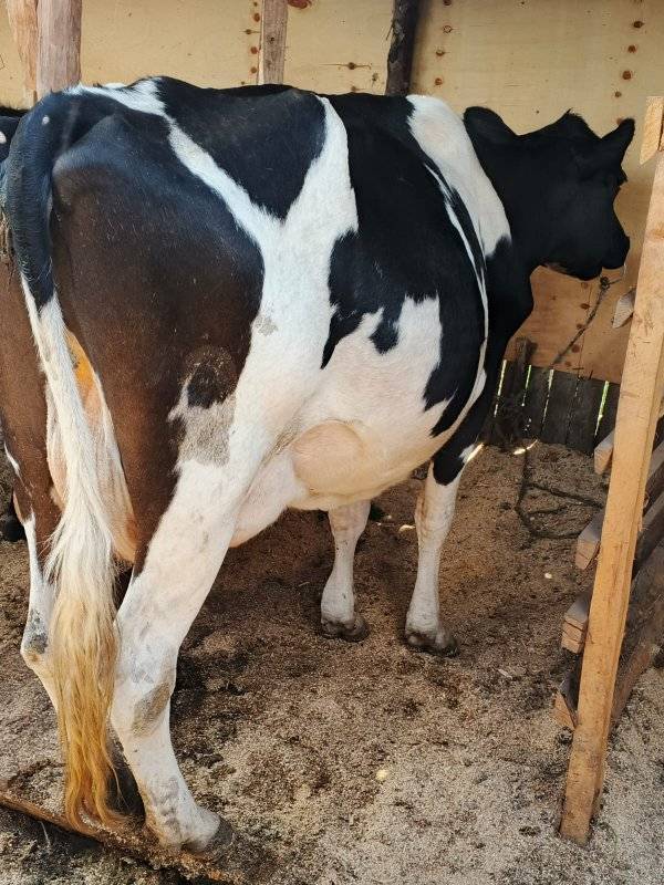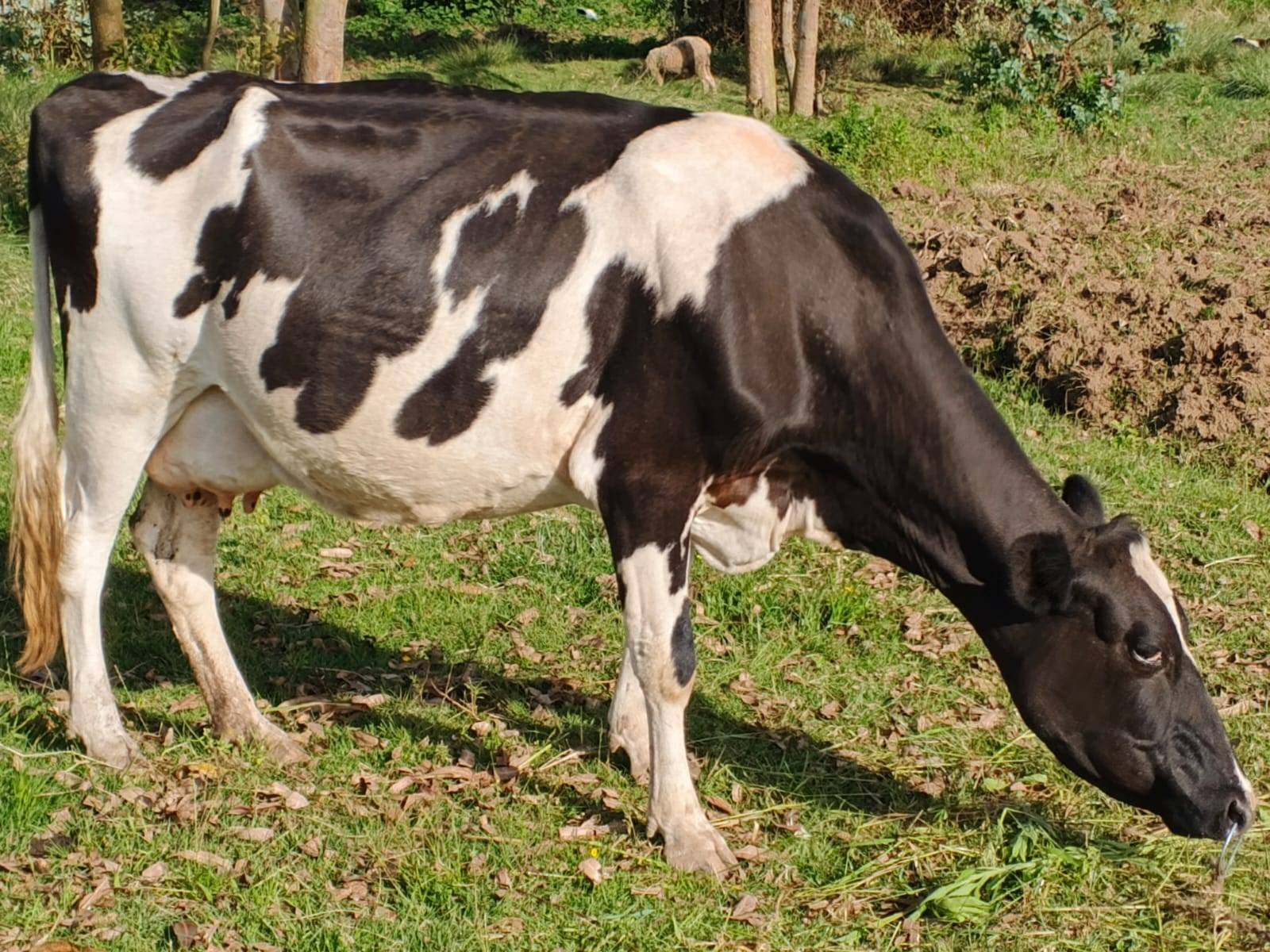 Cow for Sale: A lactating Fresian cow in her second lactation. She is currently producing 20 liters of milk per day. Available at Uwezo Farm in Miharati, Nyandarua.